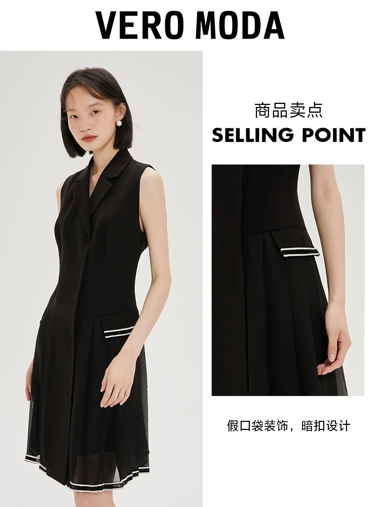 | nameOriginal | Vero Moda Outlet Summer Clearance Fashion Small Fragrance Pleated Patchwork Waist Sleeveless Dress |