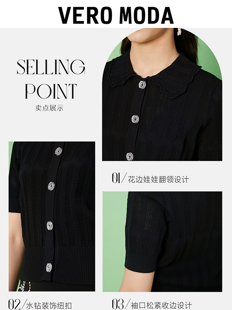 | nameOriginal | Vero Moda Outlet Summer Clearance Fashion Sweet Lapel Puff Sleeve Short Sleeve Knitted Cardigan Top Women |