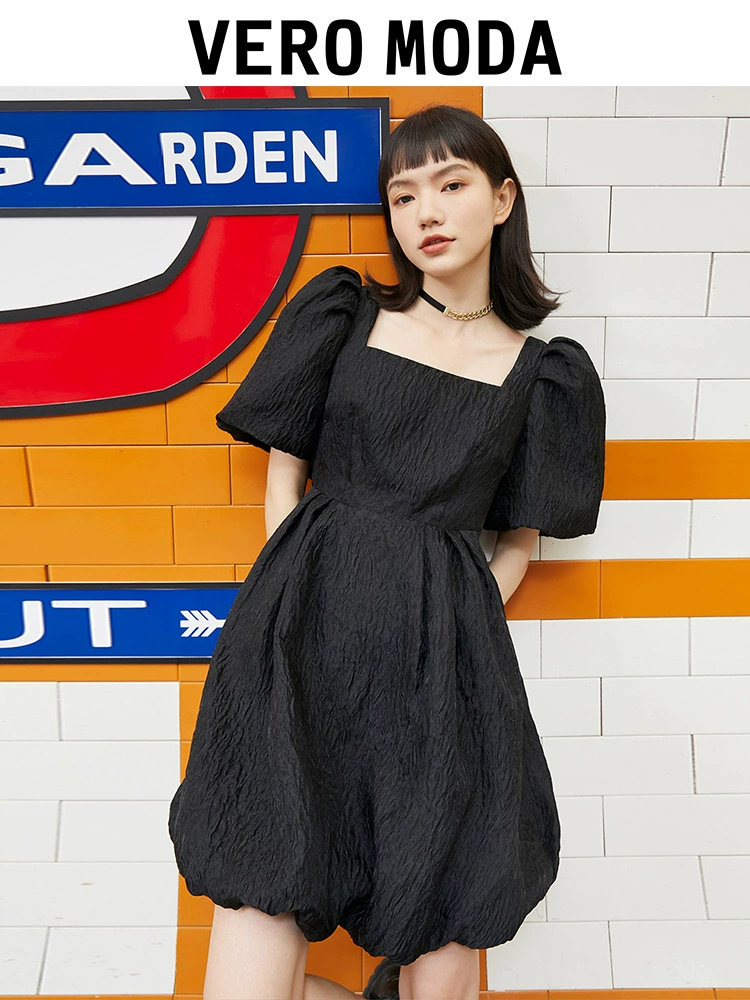 | nameOriginal | Vero Moda Outlet Summer Clearance Fashionable Square Neck Puff Sleeve Black Princess Dress |