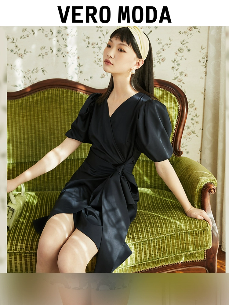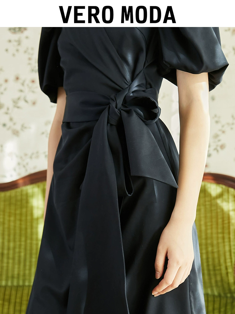 | nameOriginal | Vero Moda Outlet Summer Clearance Retro French Elegant Commuting Black Fashion Temperament V-neck Dress |