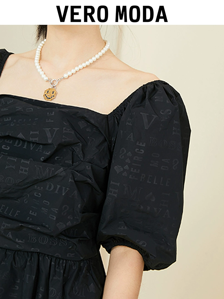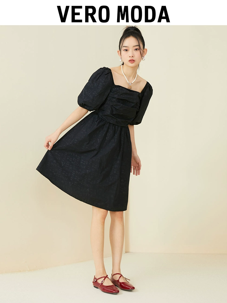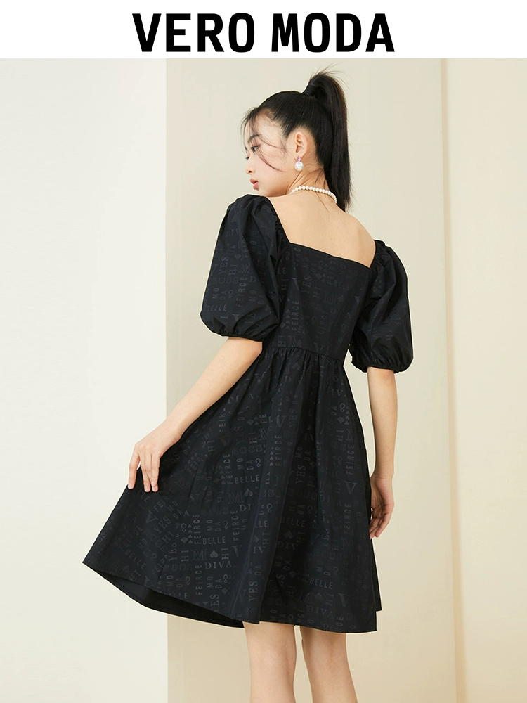 | nameOriginal | Vero Moda Outlet Summer Clearance Retro Square Neck Lantern Sleeve A-Swing Black Temperament Princess Dress |