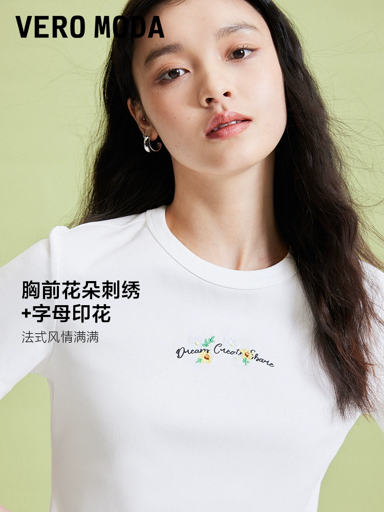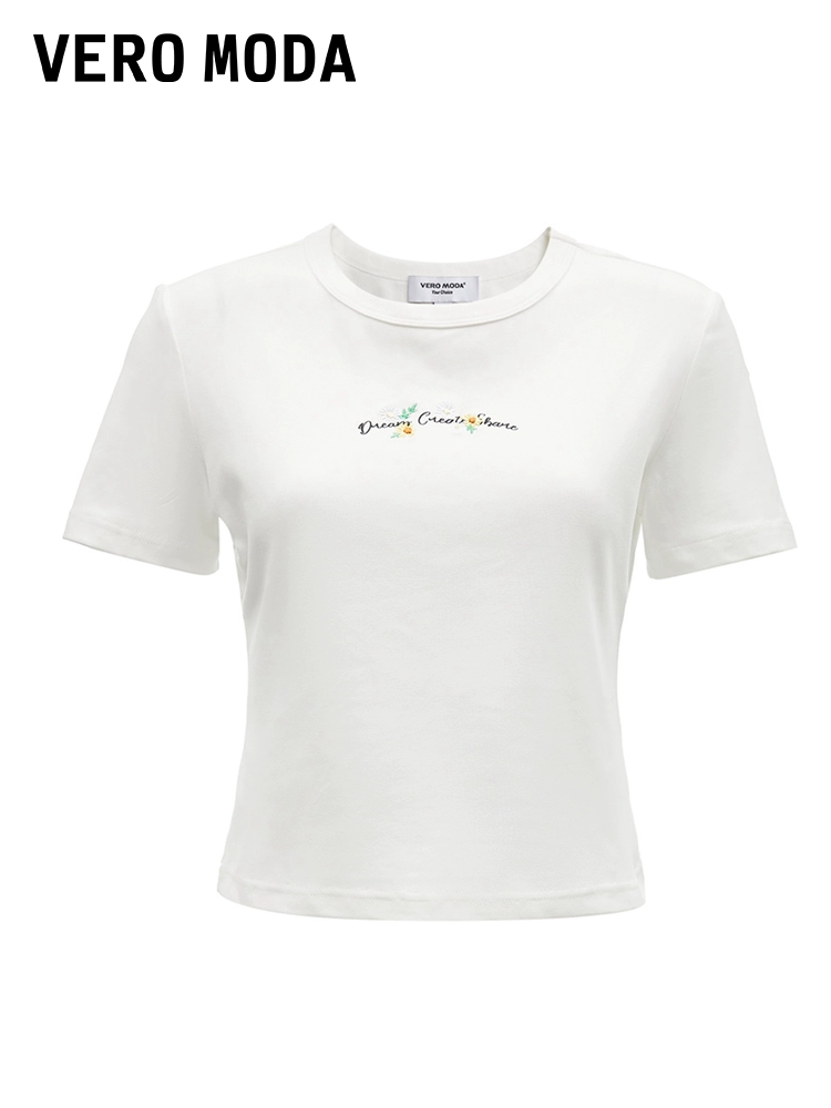 | nameOriginal | Vero Moda Outlet T-shirt Women's 2024 Summer New Slim Round Neck Printed Embroidered Sweet Short-Sleeved Top |