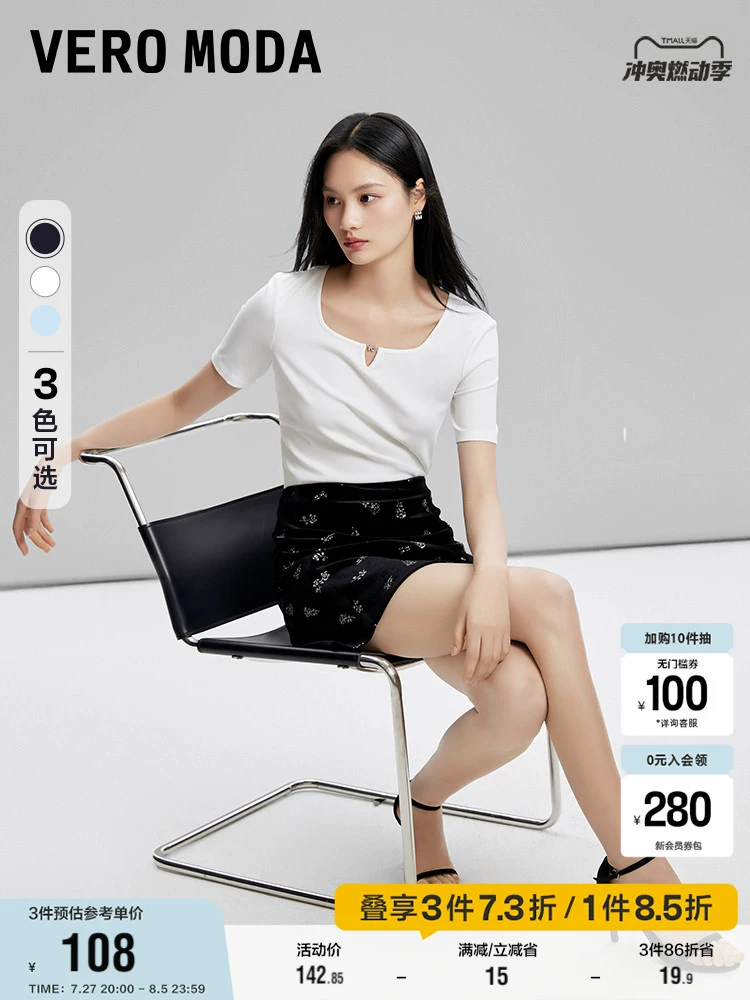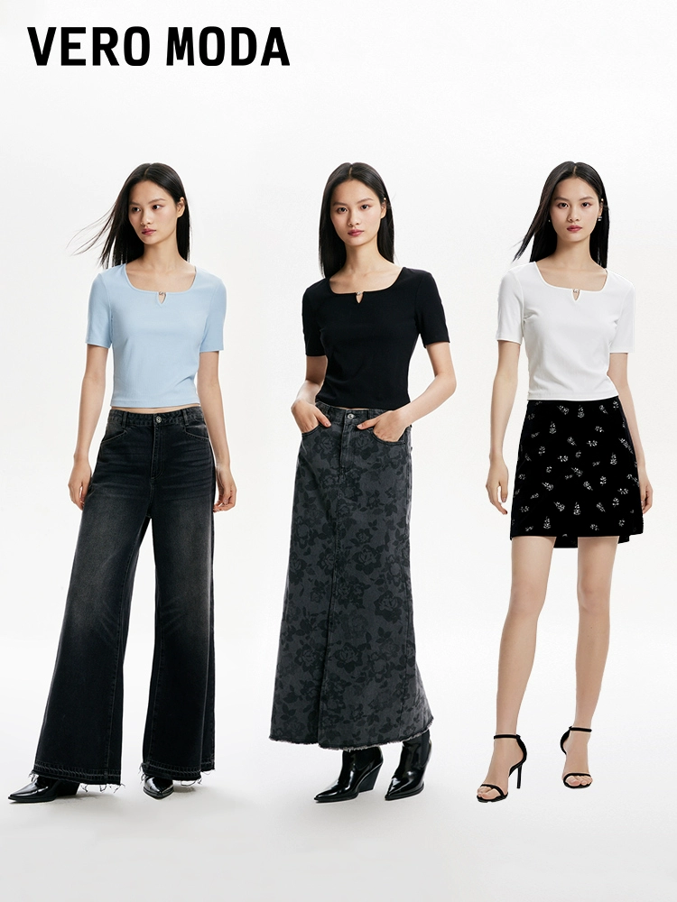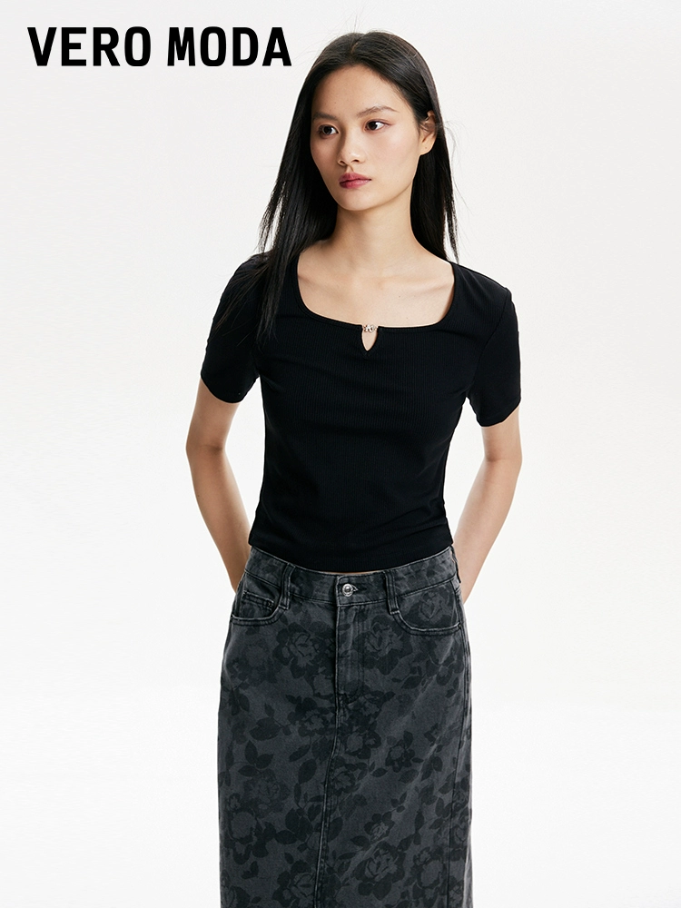 Vero Moda Outlet T-shirt women's 2024 summer new style pit strip short-sleeved short style slim solid color bottoming temperament