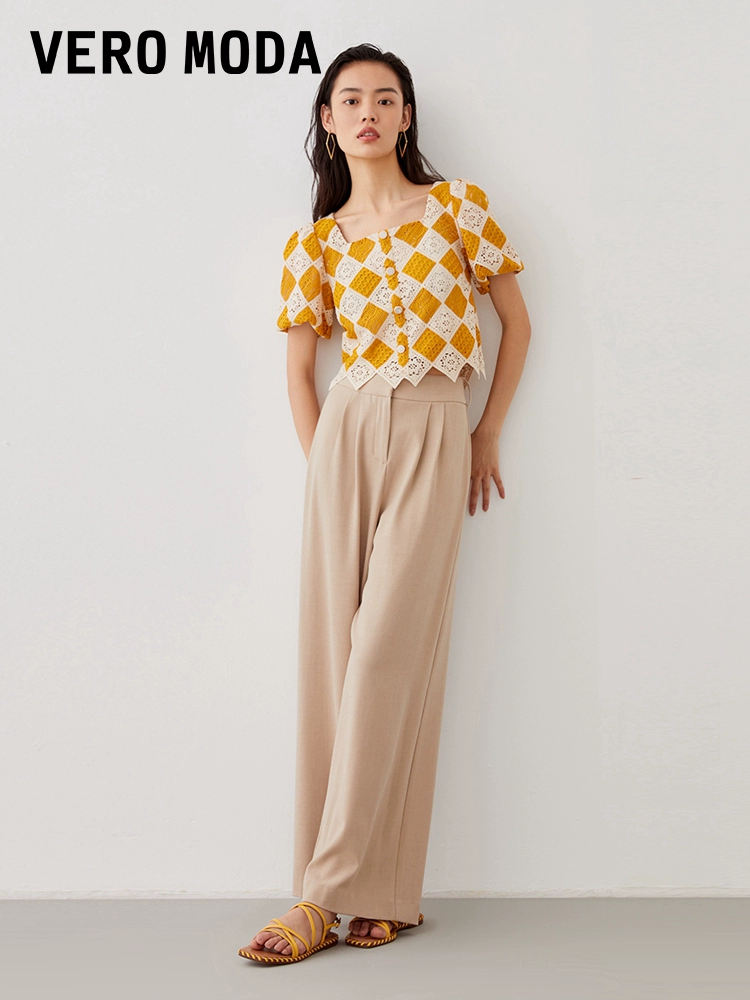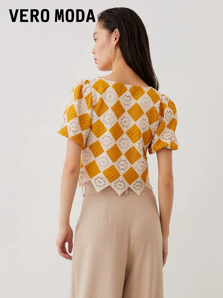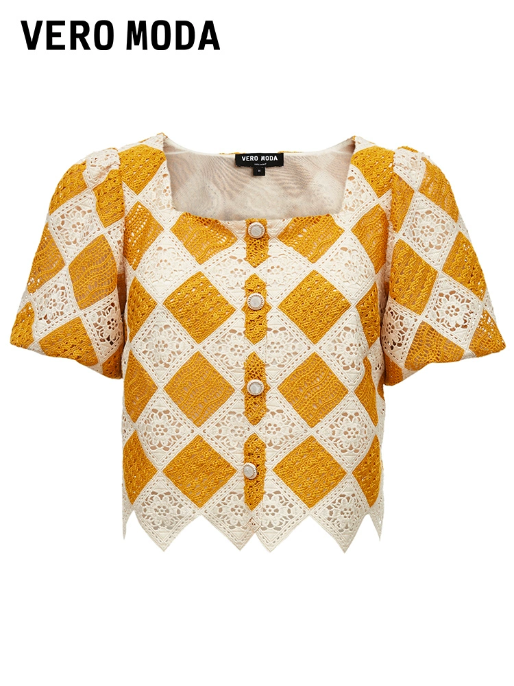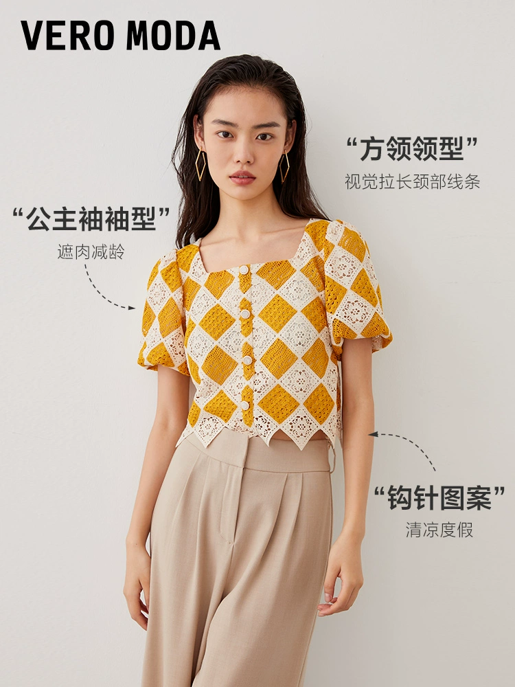 | nameOriginal | Vero Moda Outlet Top Women's Summer New Casual Vacation Crochet Diamond Square Neck Short Sleeve Casual and Versatile |