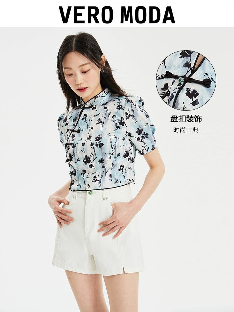| nameOriginal | Vero Moda Outlet Top Women's Summer New Short Printed Stand Collar New Chinese Disc Button Cheongsam Style Versatile |
