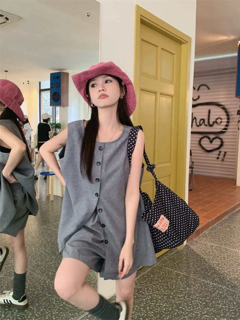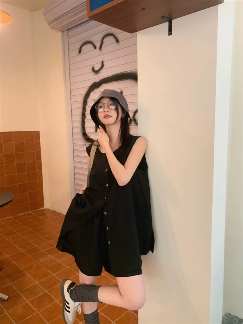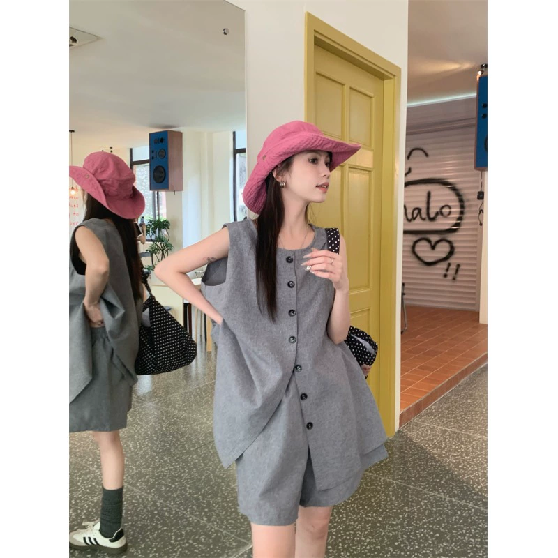 | nameOriginal | Versatile and versatile minimalist style high-waisted shorts and sleeveless vest |