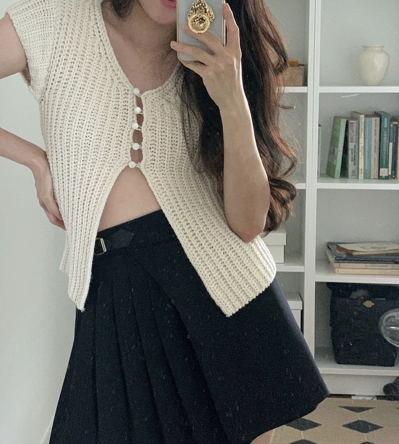 Versatile knitted ivory vest with pearl buttons