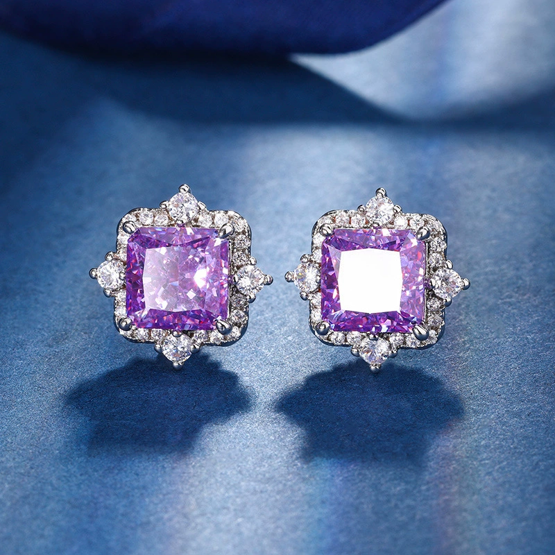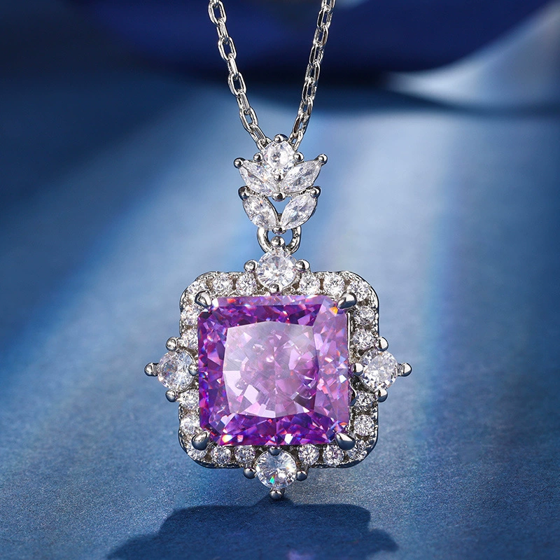 Versatile purple diamond ice flower cut princess style high-end pendant