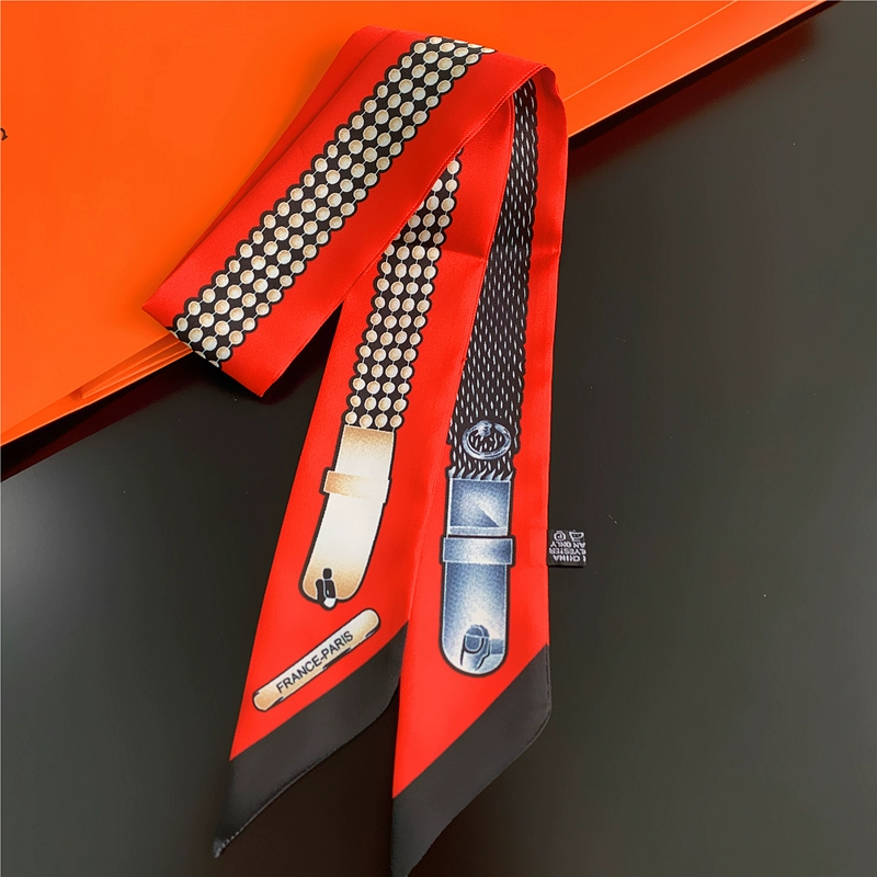 | nameOriginal | Versatile small long and narrow ribbon scarf with bag handle |