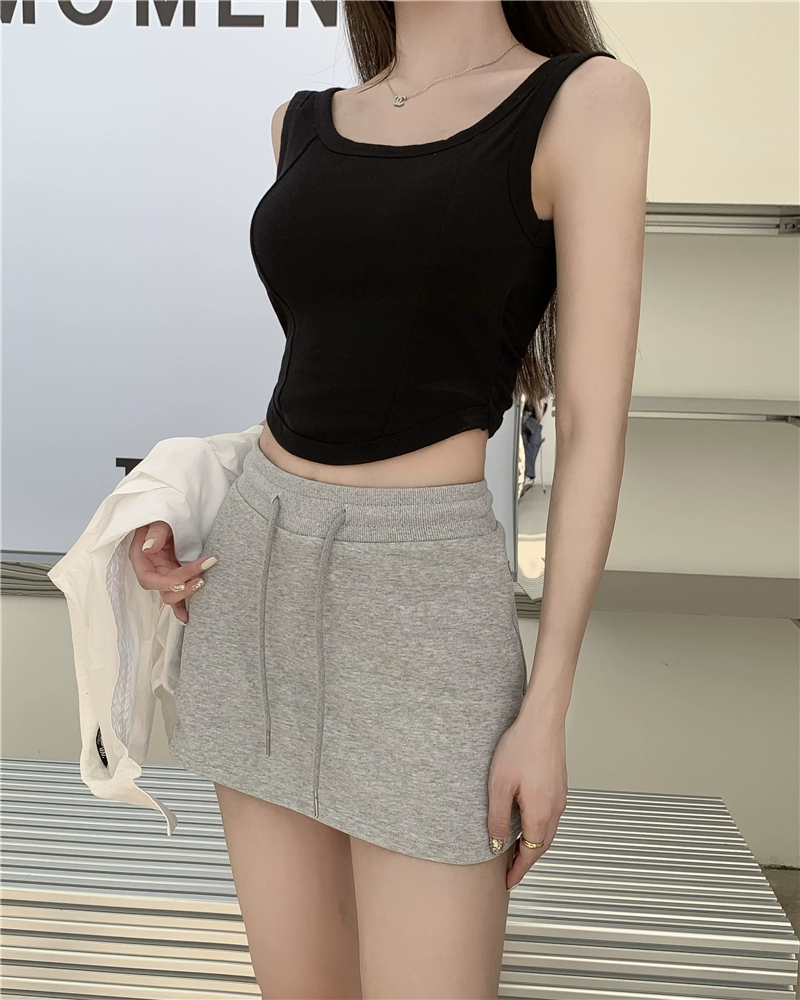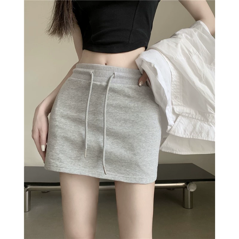 | nameOriginal | Versatile sports hottie hip-hugging drawstring gray skirt |