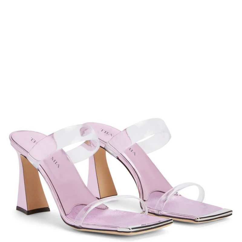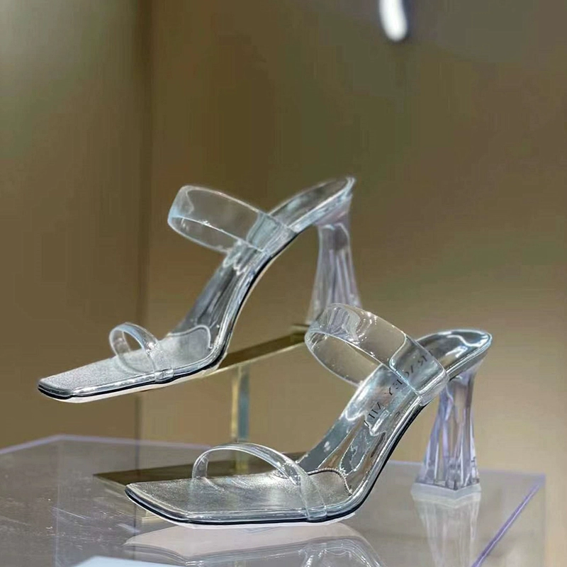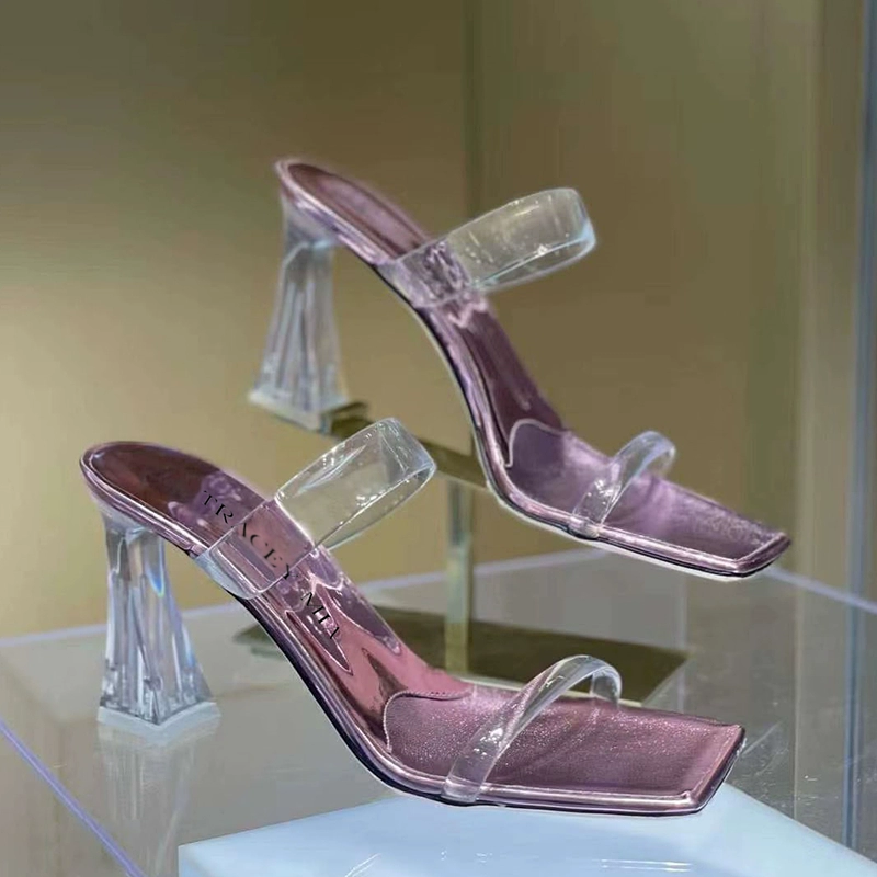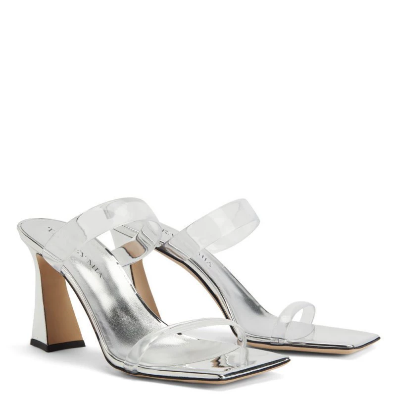 | nameOriginal | Versatile square toe silver transparent high heels with one-piece straps |