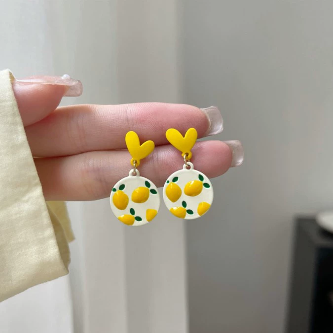 Versatile Summer Lemon Yellow Cute Geometric Earrings for Women