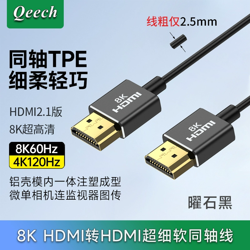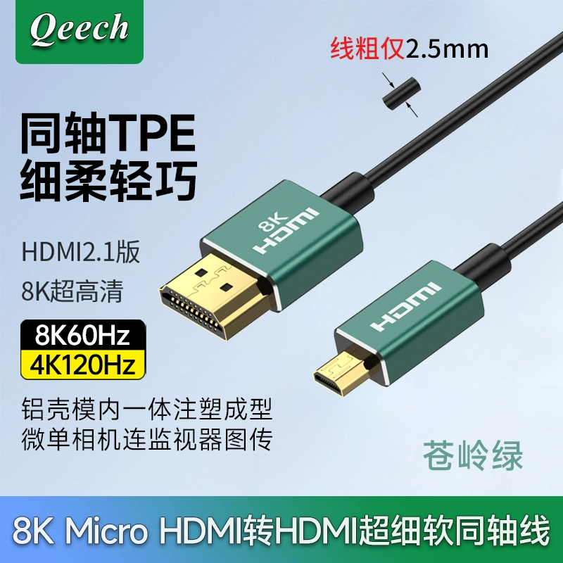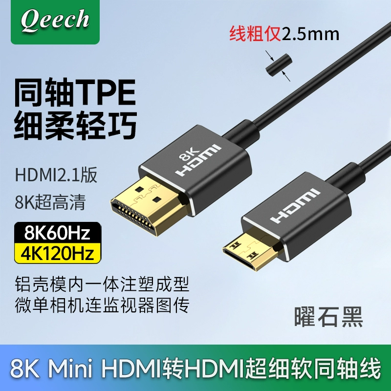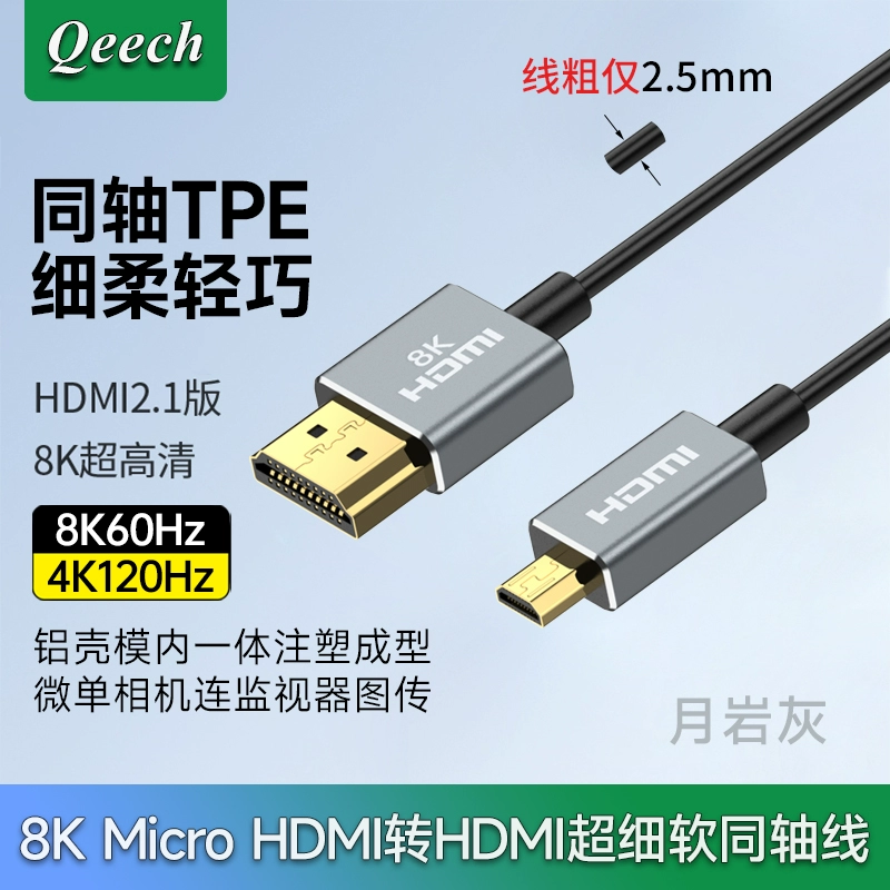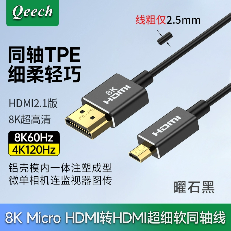 2.1 version 8K extremely thin and soft micro hdmi coaxial high-definition cable suitable for PS5 camera monitor mini large to small