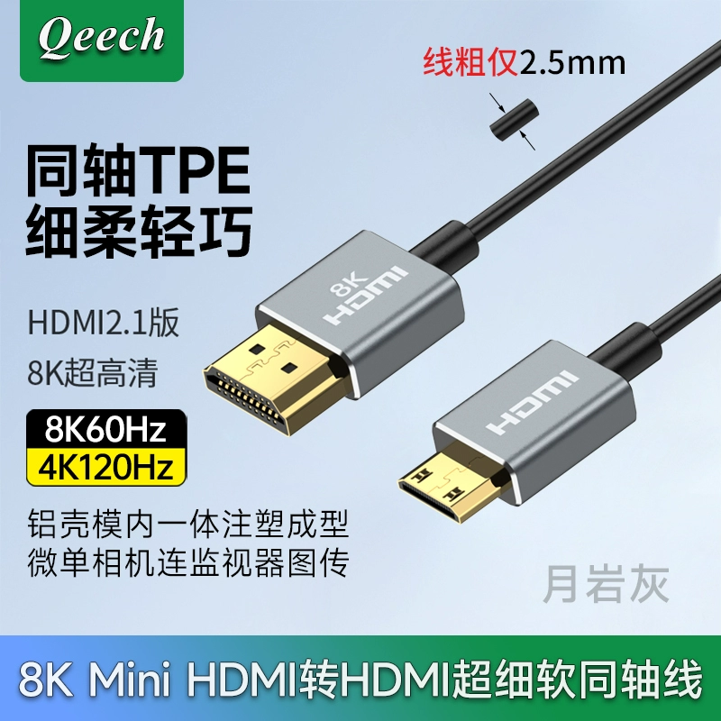 Version 2.1 8K ultra-fine soft micro hdmi coaxial high-definition cable suitable for PS5 camera monitor mini large to small