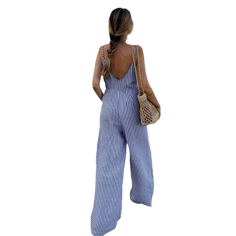 | nameOriginal | Vertical Stripe Design V-Neck Backless Strap Pants Amazon Fashion Women's High Waist Loose Casual Pants |