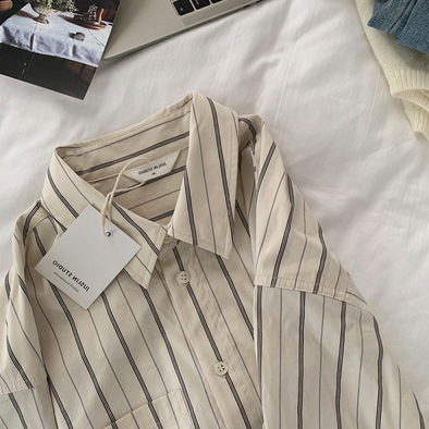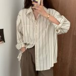 Vertical Stripe High-end Sense Shirt Long-sleeved 2024 Spring and Autumn New Fashion Loose Hong Kong Style Shirt Women’s Stacked Top