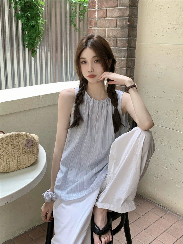 | nameOriginal | Vertical striped loose design sleeveless suspender shirt |