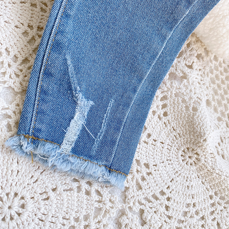 | nameOriginal | Very fish children's pants spring new baby girl solid color distressed Denim trousers EQ022 |