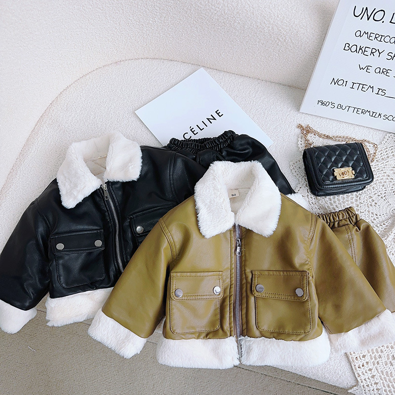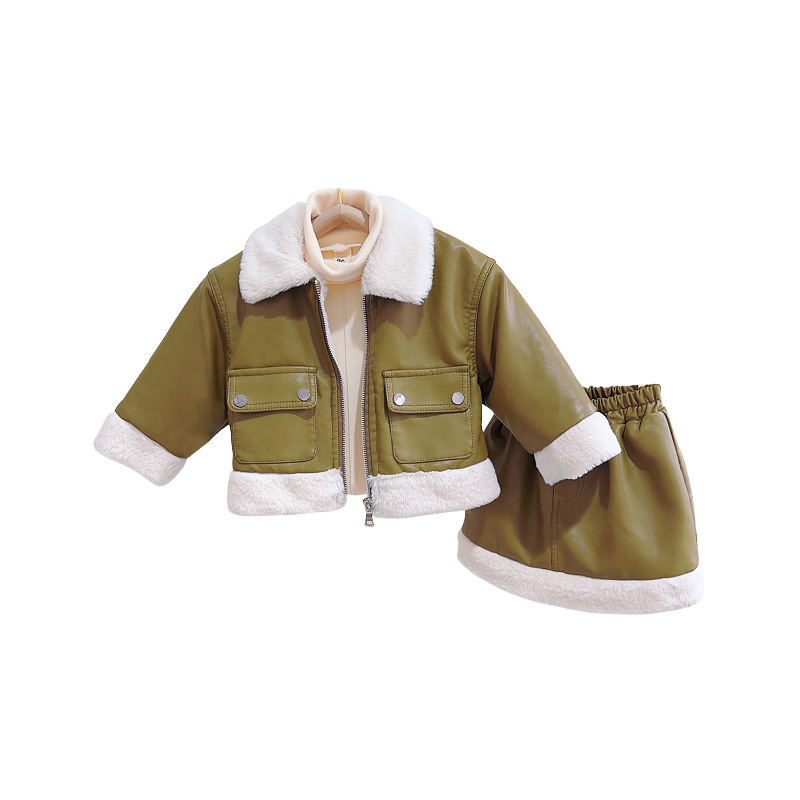 | nameOriginal | Very fish winter clothes baby girl fleece-lined warm leather jacket + short skirt two-piece WE1095 |