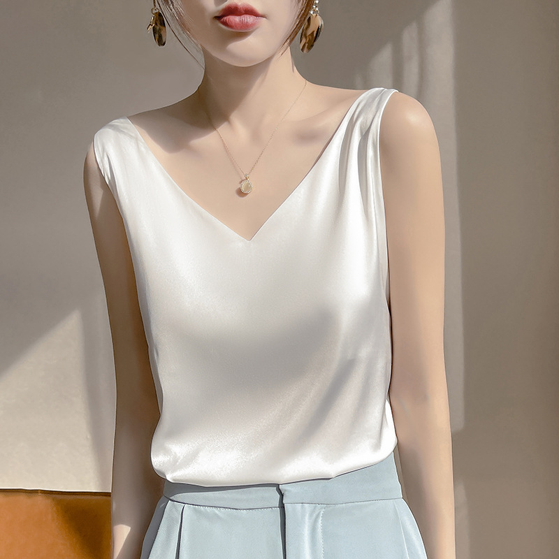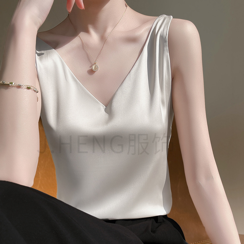 | nameOriginal | Vest Base Women's Satin Suit Loose White Solid Color Design All-match |