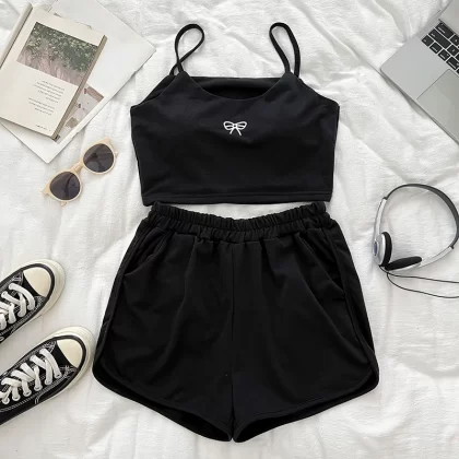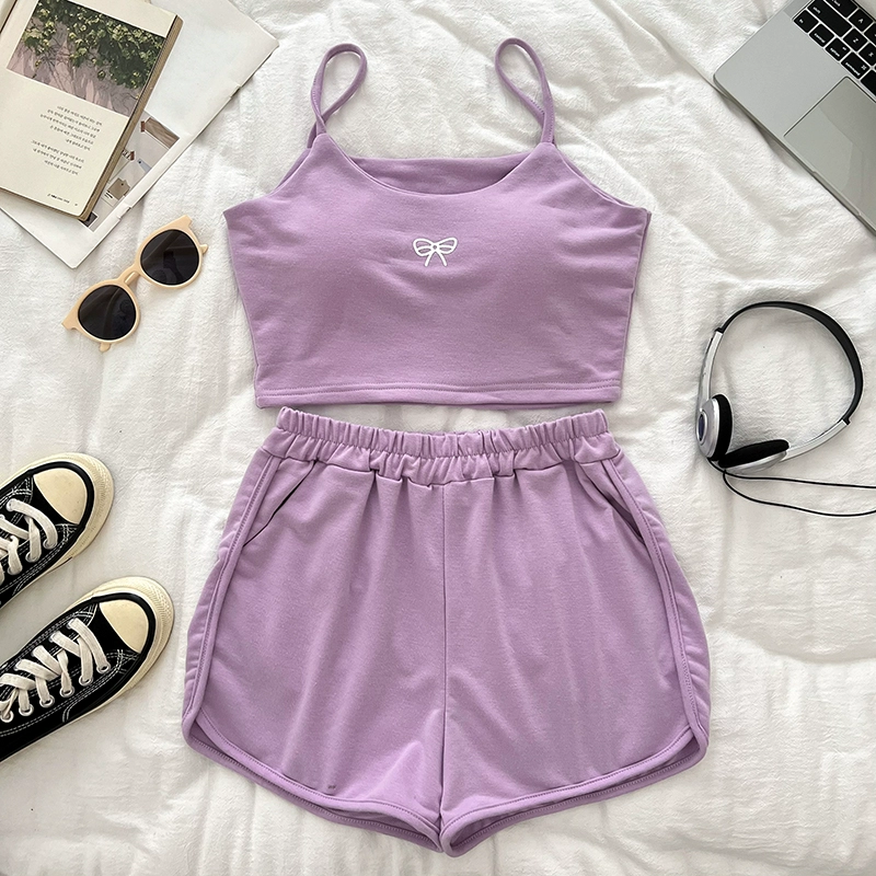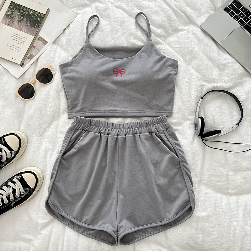 | nameOriginal | Vest elasticated hot pants two-piece set with bow print |