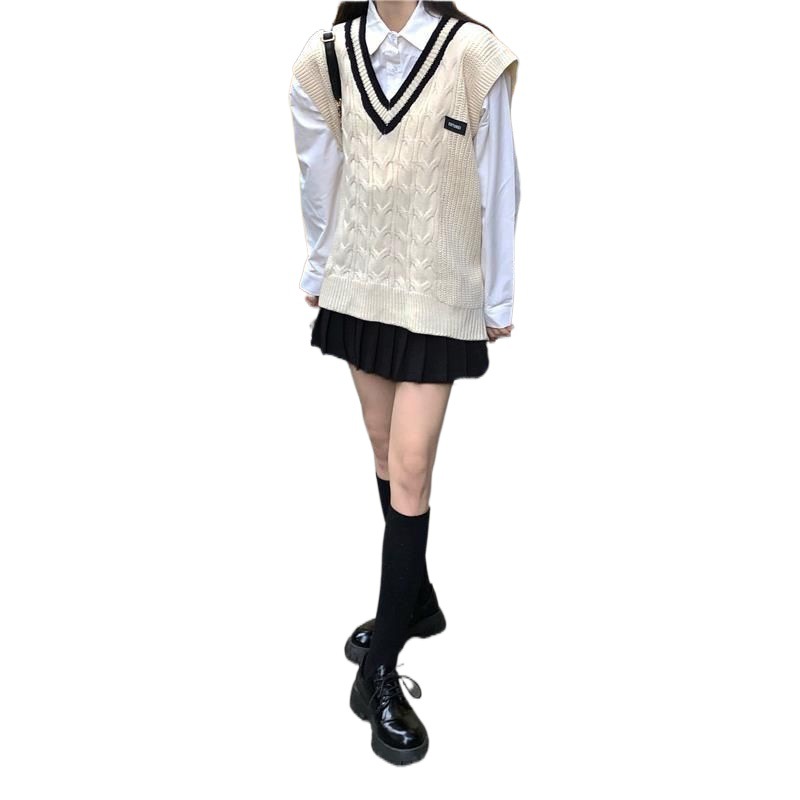 | nameOriginal | Vest Outer Wear Three-piece Suit Spring and Autumn College Style Color-matching Loose Age-reducing Vest Stacked Shirt Pleated Skirt |