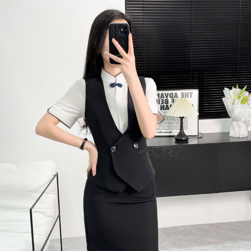 | nameOriginal | Vest Professional suit Stewardess Uniform Beauty Salon Hotel Front Desk Three-piece Fashionable Elegant Work Clothes Dress |