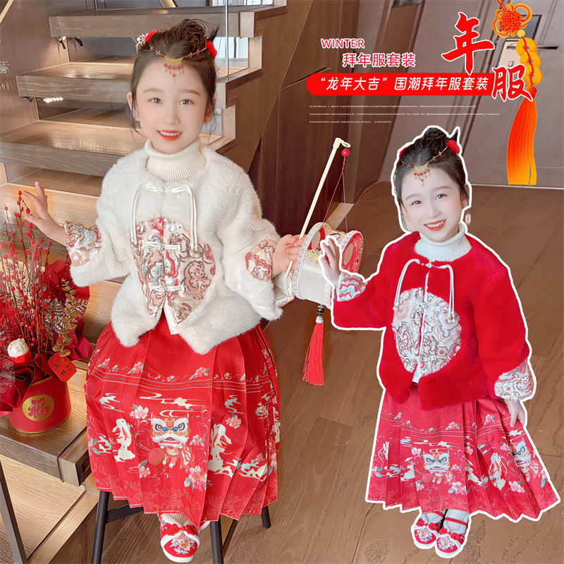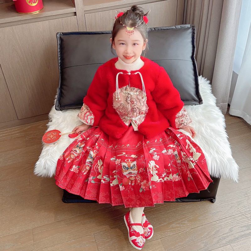 | nameOriginal | Vest skirt suit winter new children's suit Chinese style new year greeting clothes baby Tang suit Cotton and thickening Hanfu |