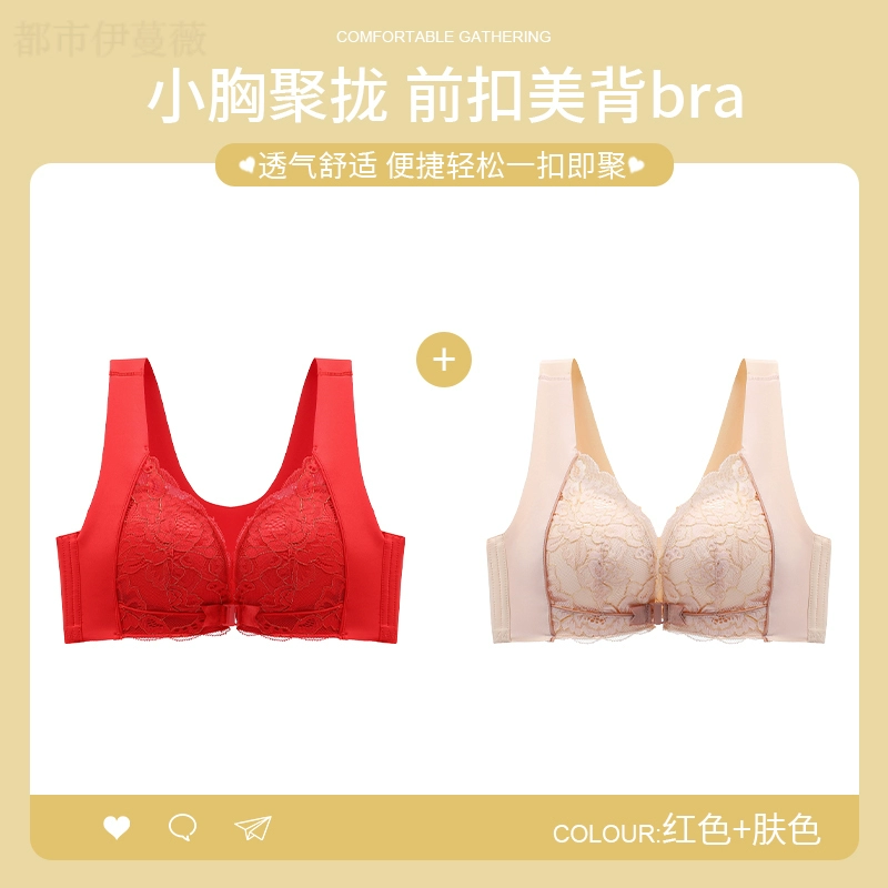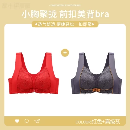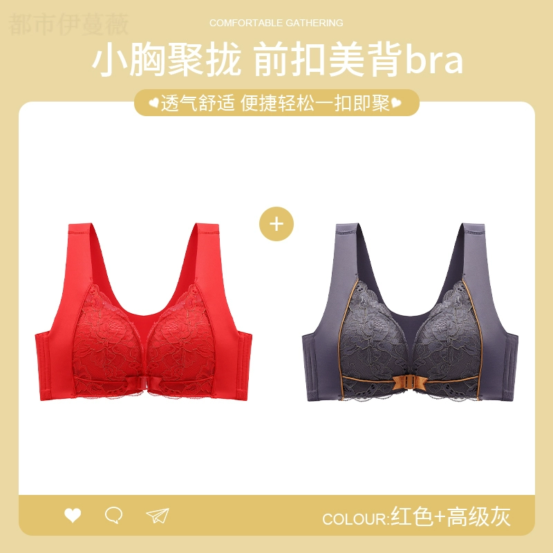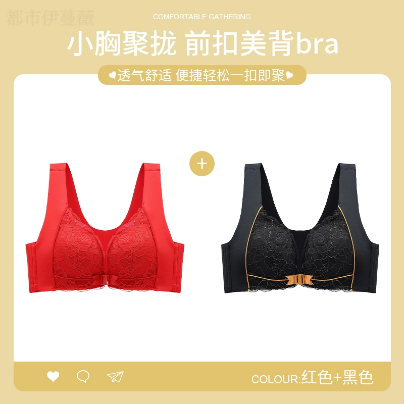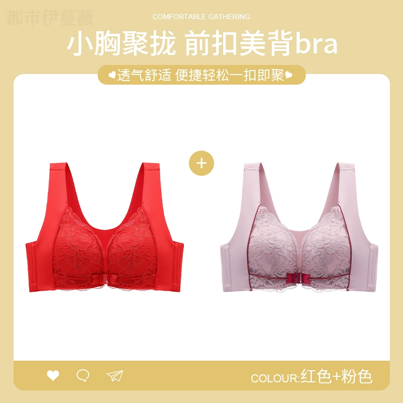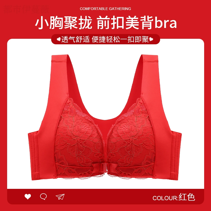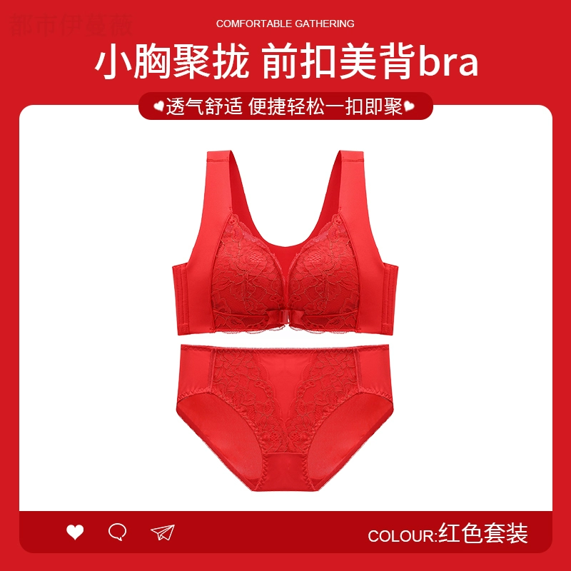 Vest-style red underwear women's underwear set animal year sexy lace front button bra push-up without wire ring female dragon