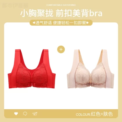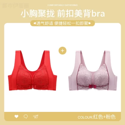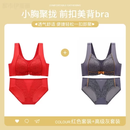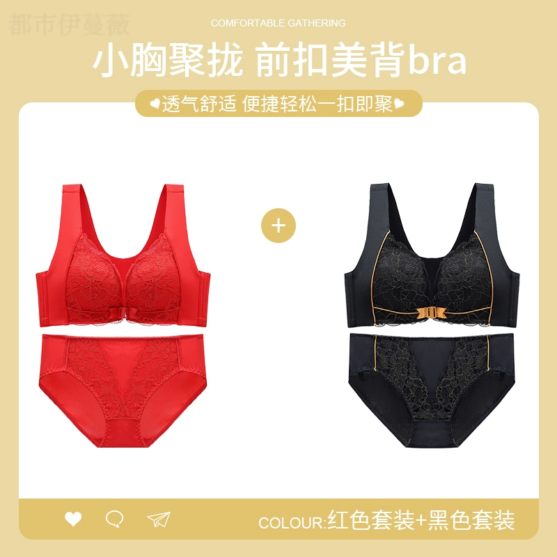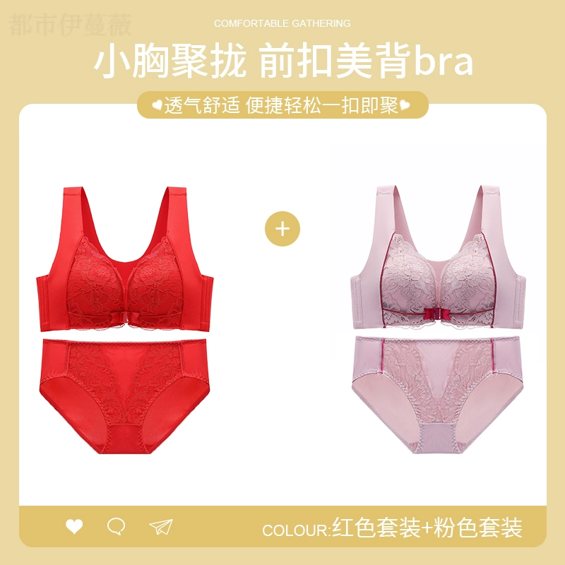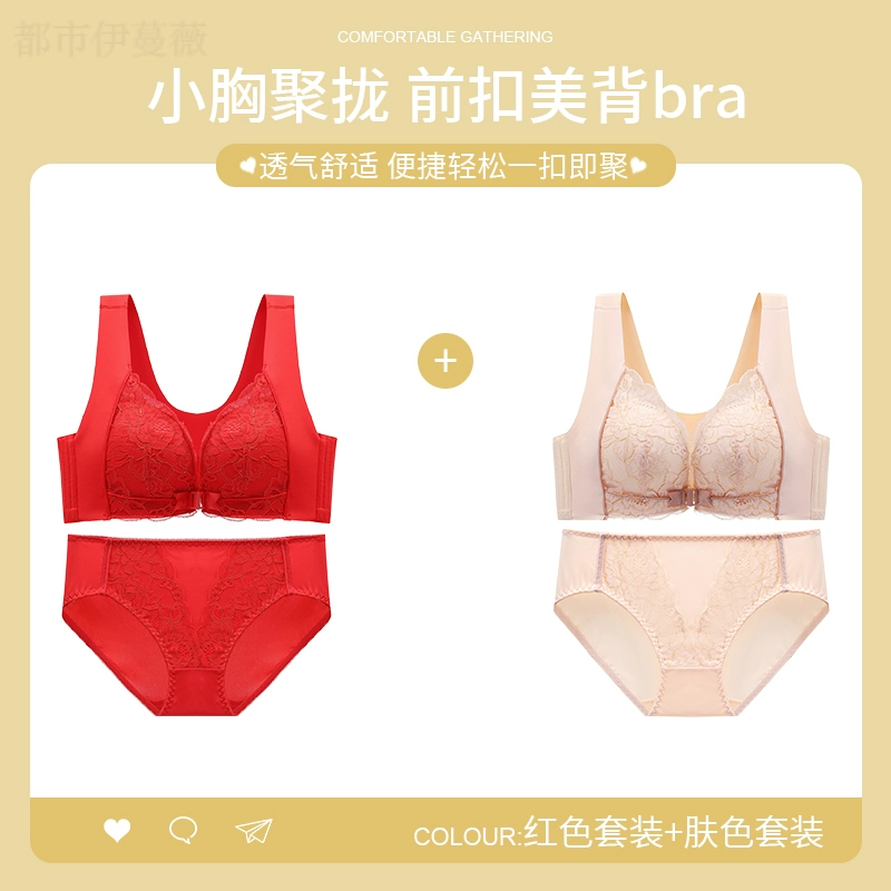 Vest-style red underwear women’s underwear set animal year sexy lace front button bra push-up without wire ring female dragon