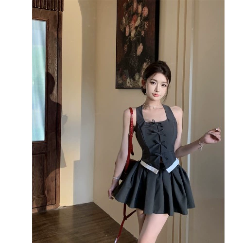 | nameOriginal | Vest suit sexy top high waist pleated skirt halter neck |
