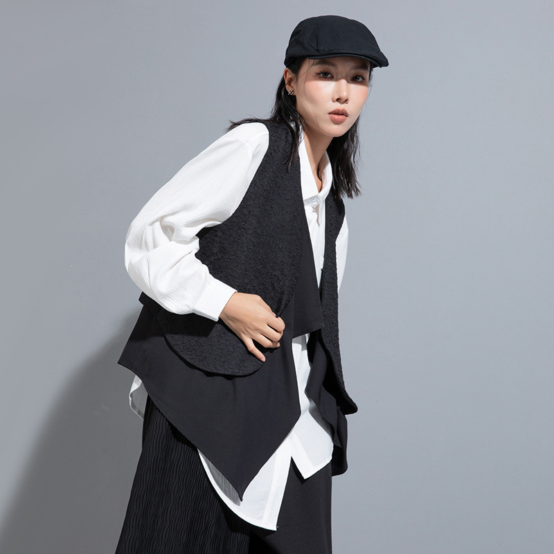 Vest Vest Spring and Autumn Sleeveless Cardigan External Wear Personalized Multi-layer Design Sense Waistcoat Stacked New Women's Handsome Top