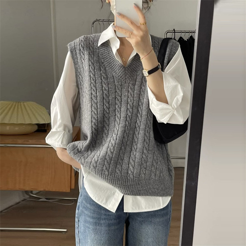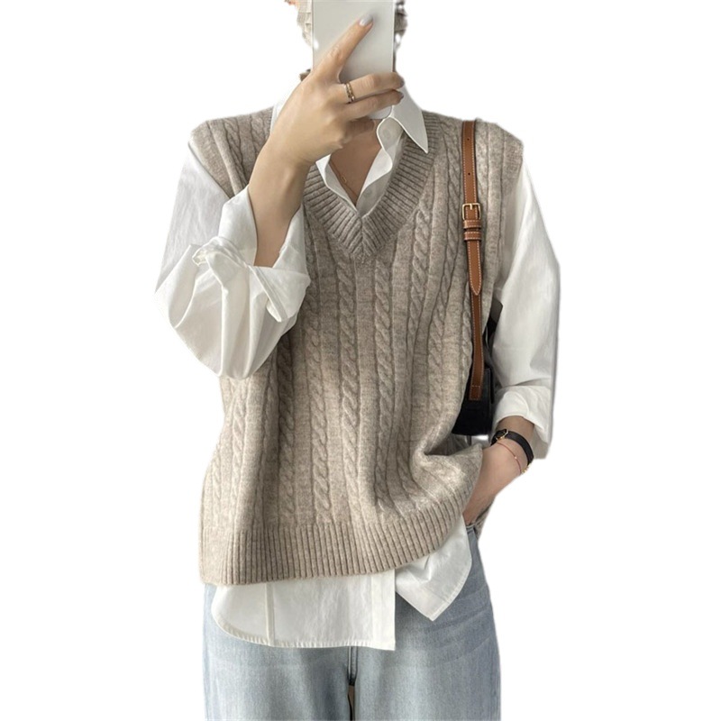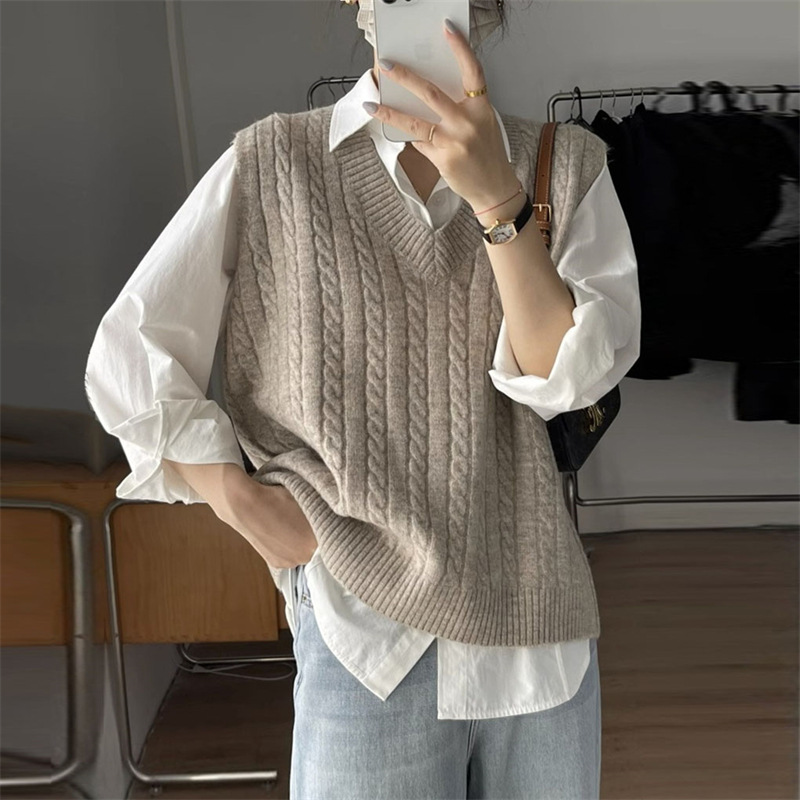 Vest Vest Vest V-Neck Wear 2023 New Sweater Women’s Loose Knitted Foreign Style Women’s Outer Wear Sleeveless Top Women’s Clothing