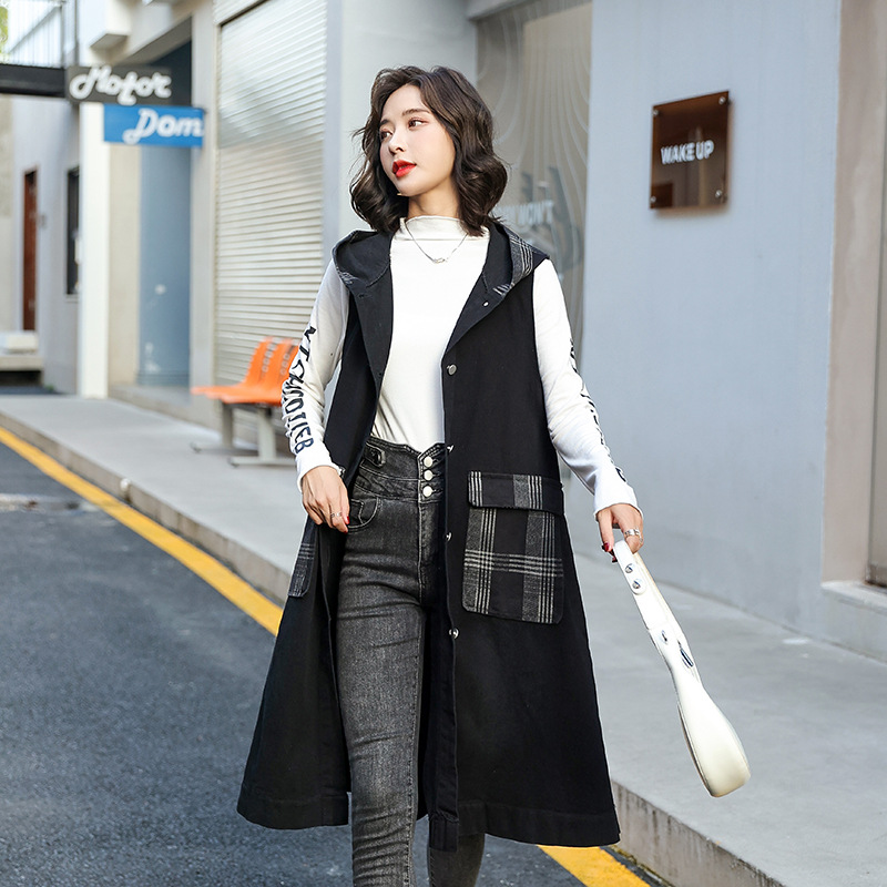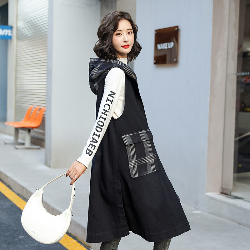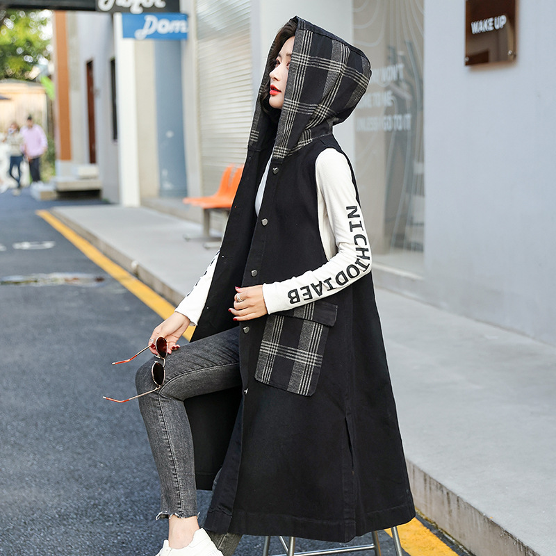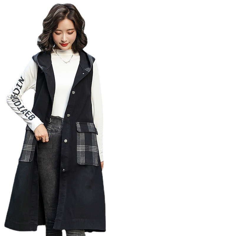 Vest Women's Spring and Autumn 2024 New Loose plus size Slimming Jacket Casual Hooded Mid-length Vest
