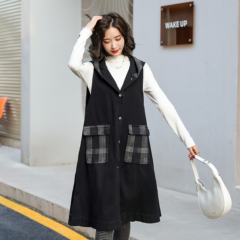 Vest Women’s Spring and Autumn 2024 New Loose plus size Slimming Jacket Casual Hooded Mid-length Vest