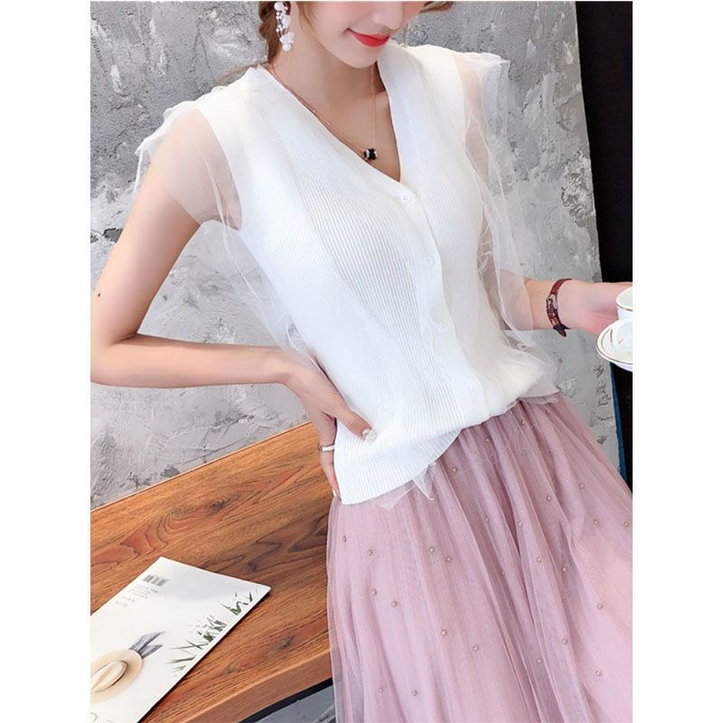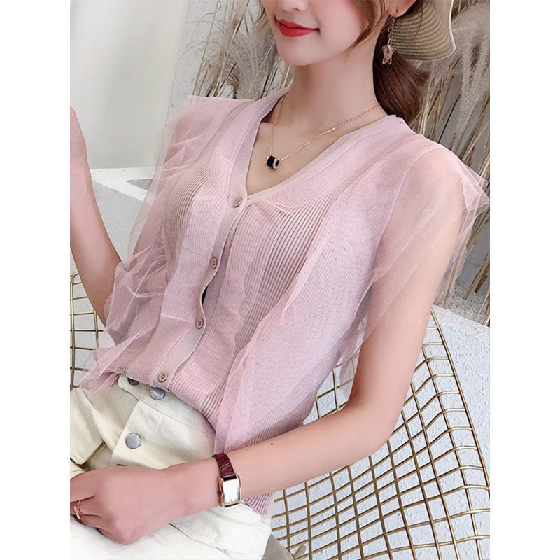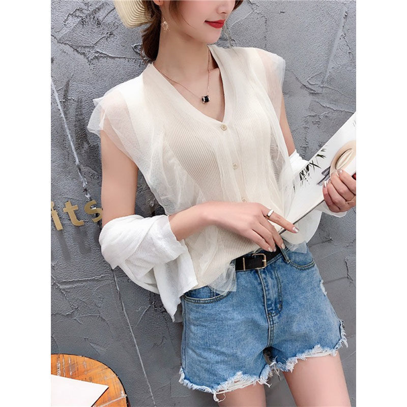 | nameOriginal | Vest Women's Summer New Sleeveless Ice Silk V-Neck Knitted Small Cardigan Top Thin Outer Wear Trendy Short Sleeve Spring and Autumn Suit. |