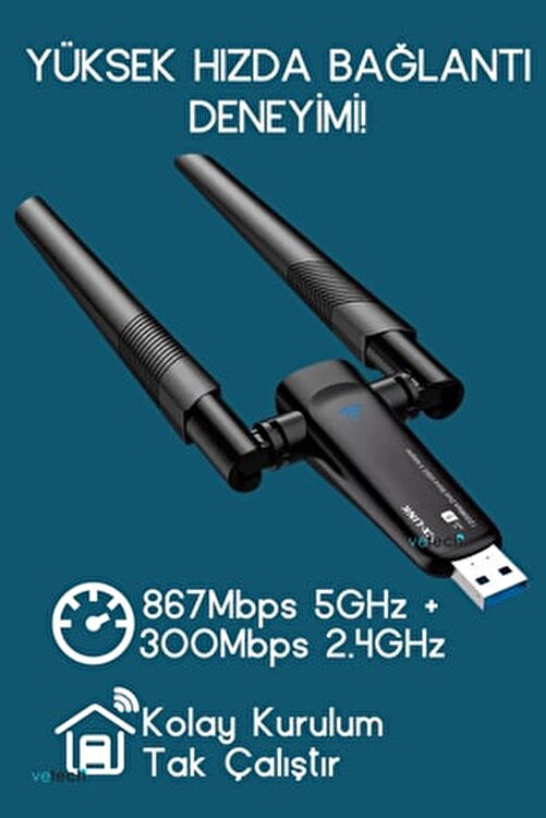 With Vetech Dual Band dual antenna Wifi Receiver, you can achieve clearer internet speeds. Easily transfer the connection provided by your infrastructure provider and modem to your Laptop or Desktop computer at high speed.