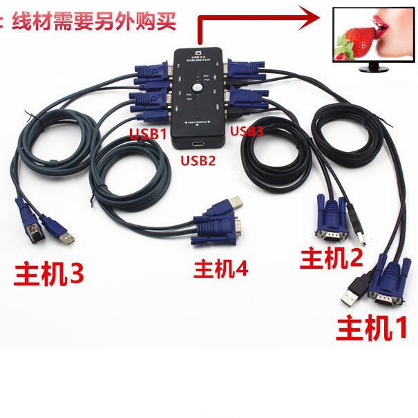 VGA manual switcher four in one out vga computer switcher 4 in one out video KVM usb switcher