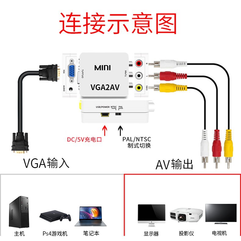 | nameOriginal | VGA to AV converter computer notebook connected to old TV conversion line monitoring to video audio and video transmission |