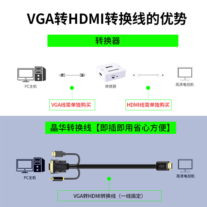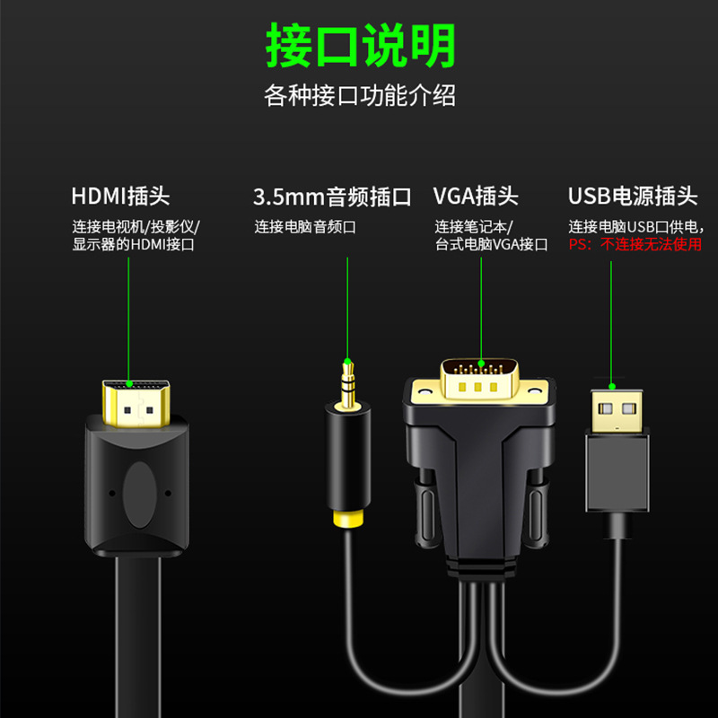 | nameOriginal | vga to hdmi cable with audio laptop monitor TV projector cable 1080p |