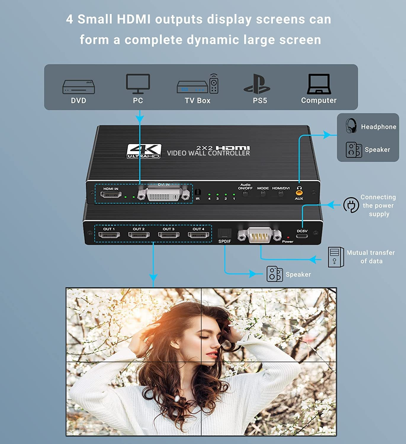 | nameOriginal | Video picture splicer hdmi one in four out four monitors spell into a large picture HD 4K |