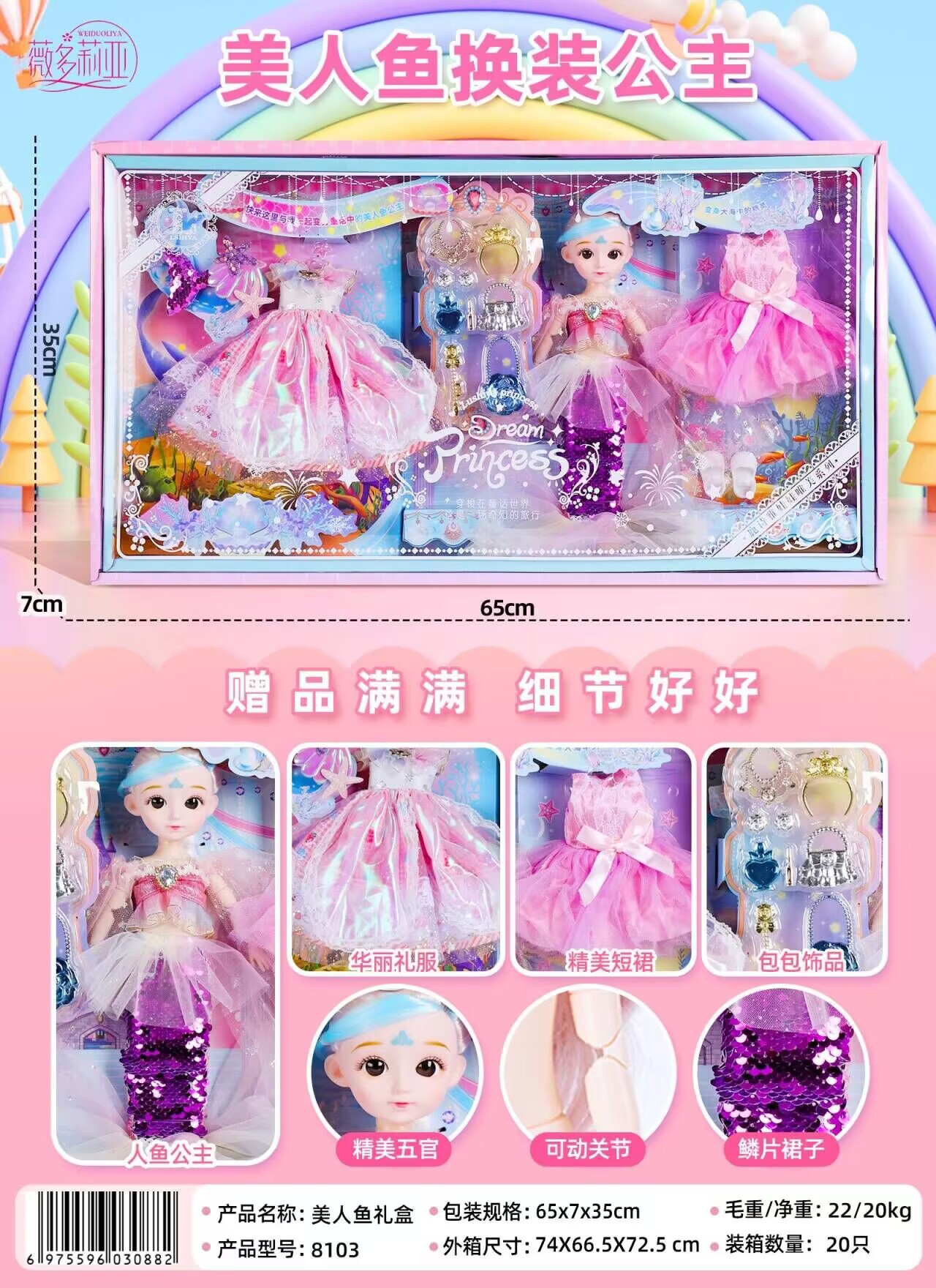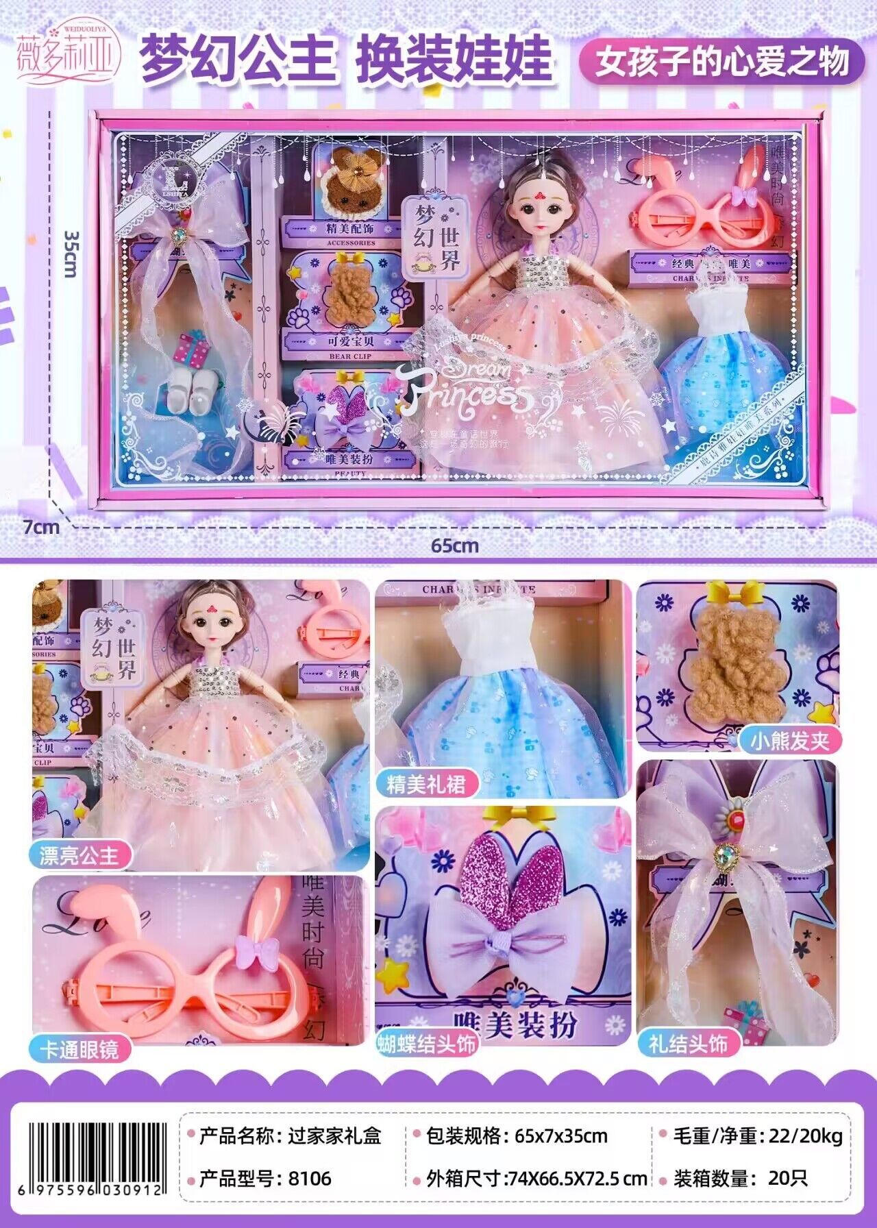 | nameOriginal | Vidolia Fantasy Princess Doll World 50cm Fashion Girl Doll 60cm74cm Gift Box Set |