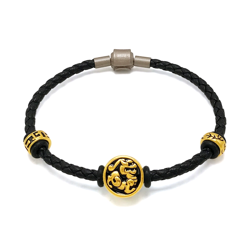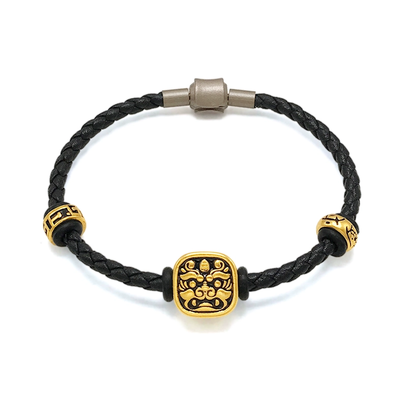 Vietnamese sand gold black gold through-hole gold-swallowing beast bracelet beaded for men and women gold-plated Pi Xiu leather rope with beads and the same pendant