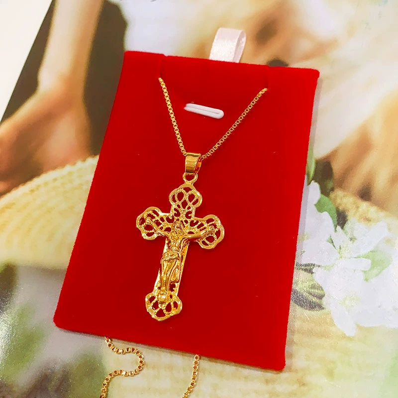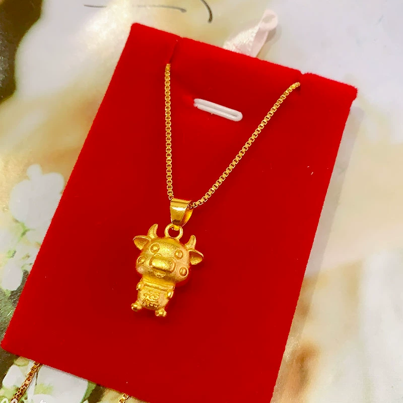 | nameOriginal | Vietnamese sand gold necklace women's clavicle chain plated 999 gold jewelry zodiac ox pendant cross necklace |