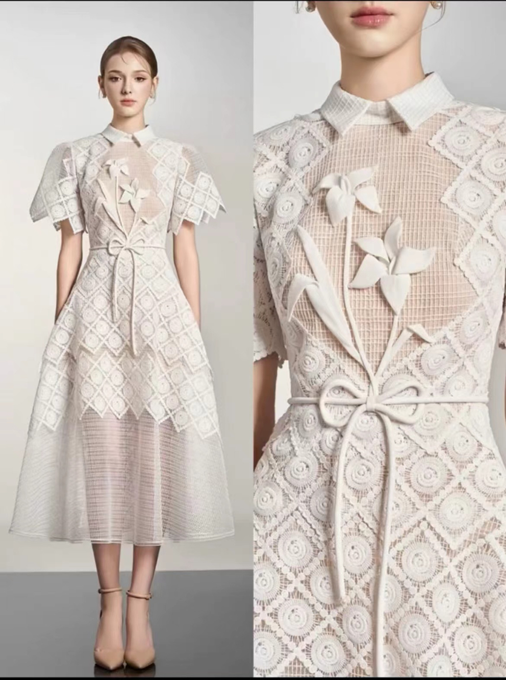 | nameOriginal | Vietnamese socialite spring lace waist dress embroidered |