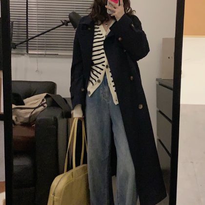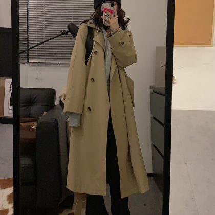 nameOriginal | viiwen a classic draping slimming mid-length Korean style khaki trench coat for Women 2 colors |