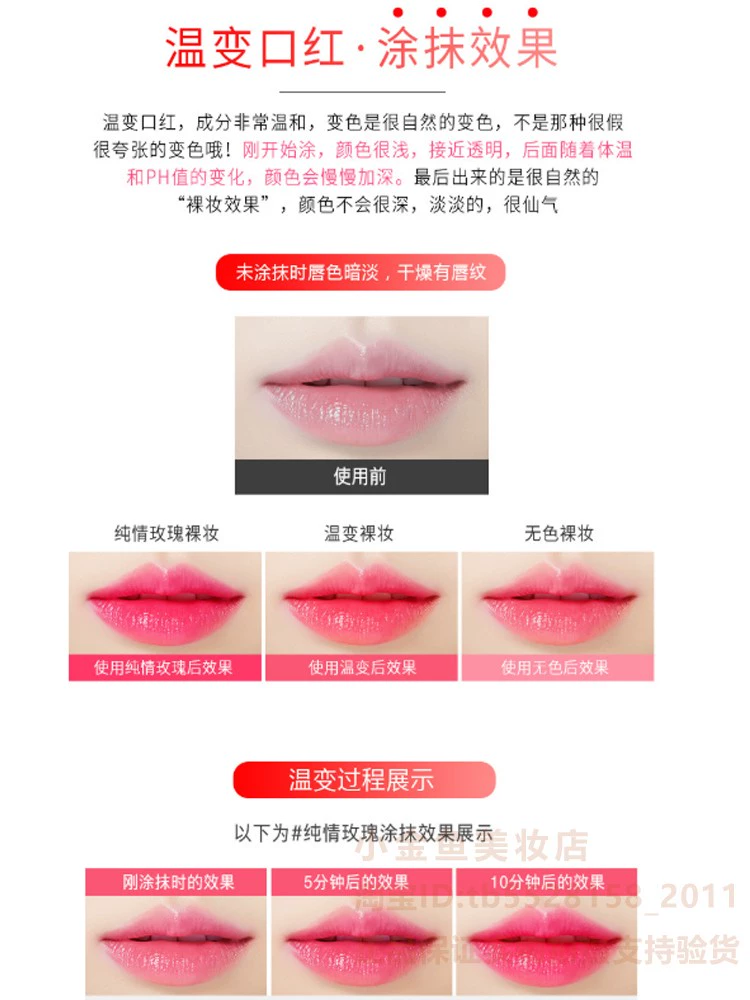 | nameOriginal | Villa Girl Warm-Changing Lip Balm Colorless Grain Removal Cream Long-lasting Color-Changing Waterproof Lipstick Genuine Moisturizing and Moisturizing Pregnant Women |