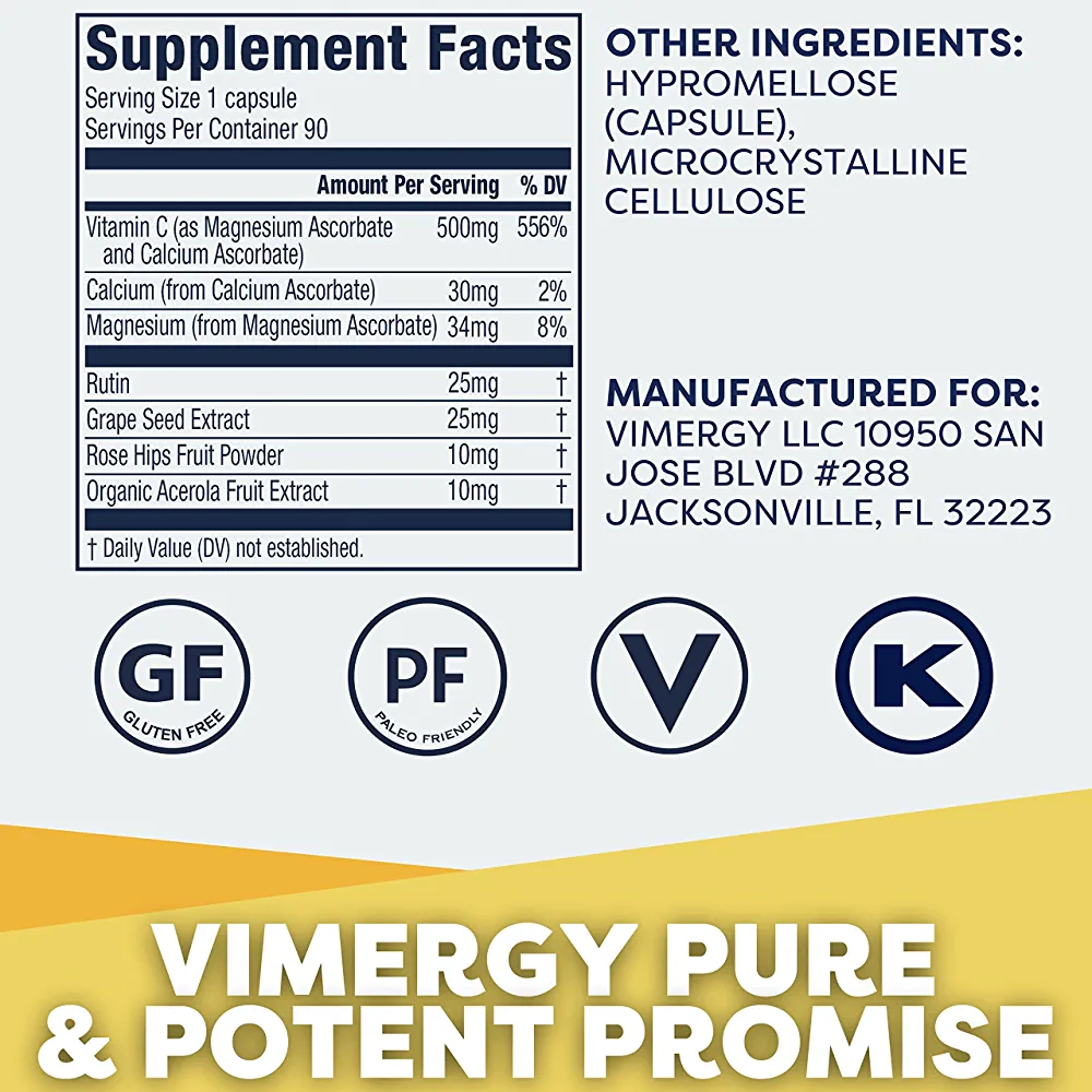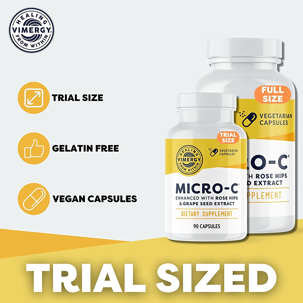| nameOriginal | Vimergy Micro-C, Trial Size – 90 Servings – 500mg All-Natural Buffered Vitamin C Capsules with Rose Hips, Rutin, Grape Seed & Acerola Fruit Extract – Supports a Healthy Immune System & Skin Health |