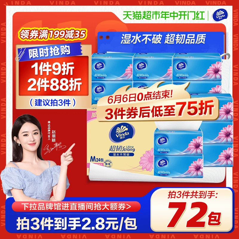 Vinda super tough tissue paper 3 layers 150 sheets 24 packs of M size paper towels for household use affordable packaging full box new and old alternately issued