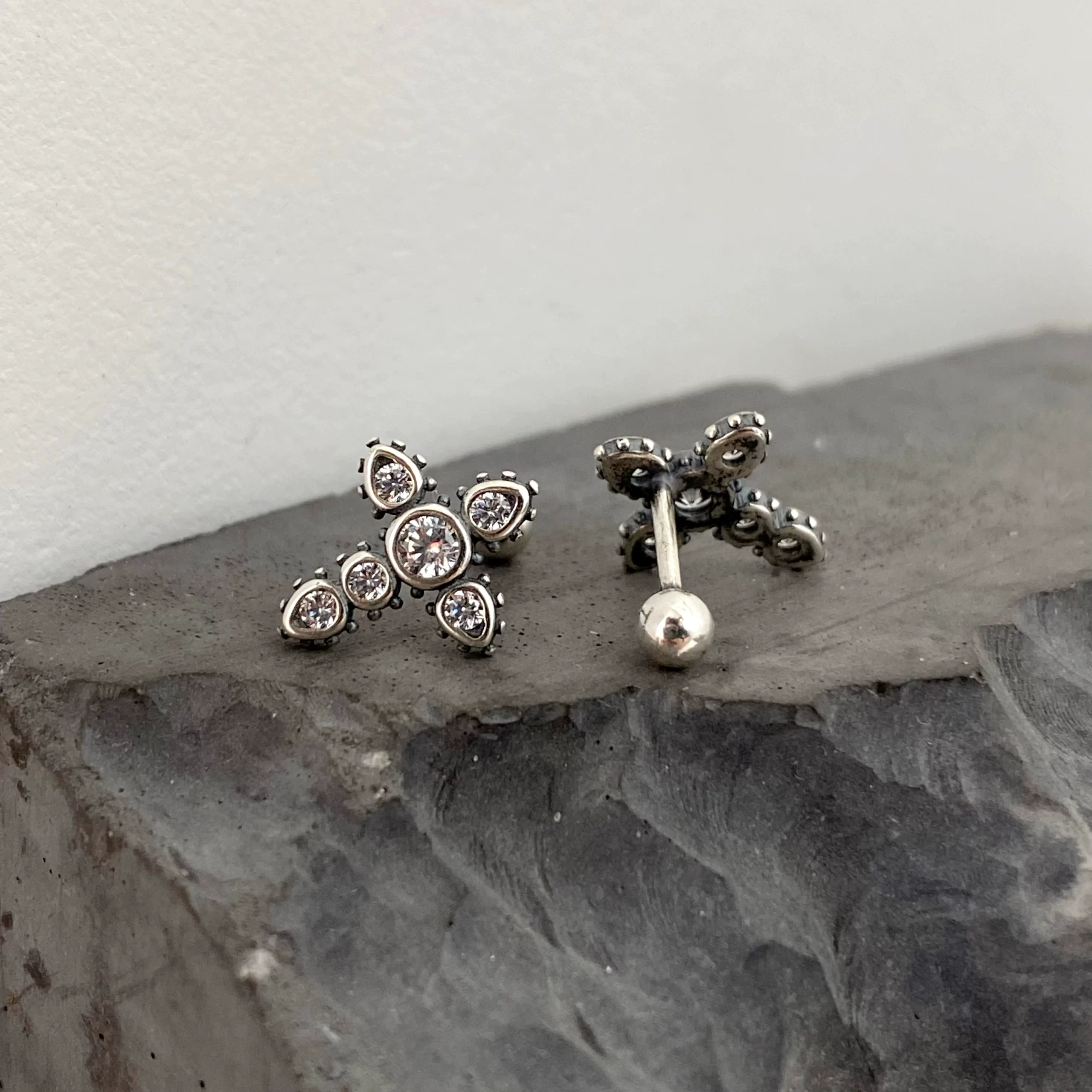 | nameOriginal | Vintage 925 sterling silver cross ear plugs with zircon diamonds |